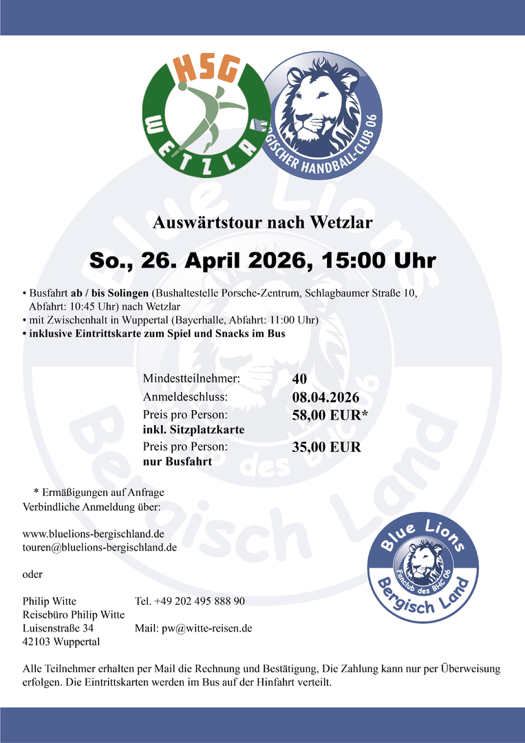 Du willst unsere Löwen auswärts bei der Punktejagd anfeuern, unterstützen und mitfiebern?